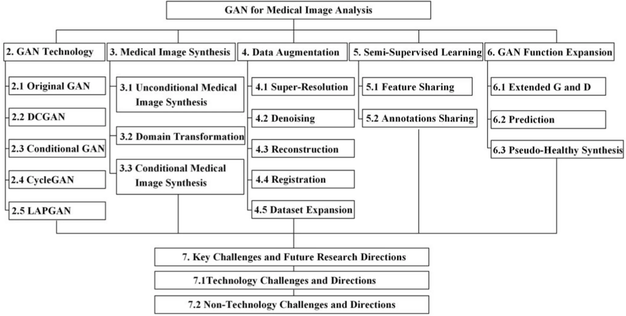 Figure 2. Source: Li, X., Jiang, Y., Rodriguez-Andina, J.J. et al. When medical images meet generative adversarial network: recent development and research opportunities. Discov Artif Intell 1, 5 (2021). https://doi.org/10.1007/s44163-021-00006-0